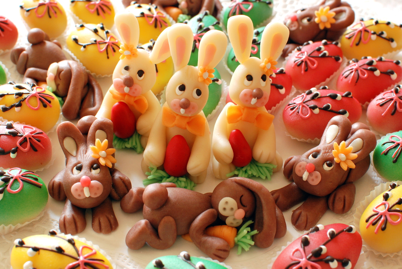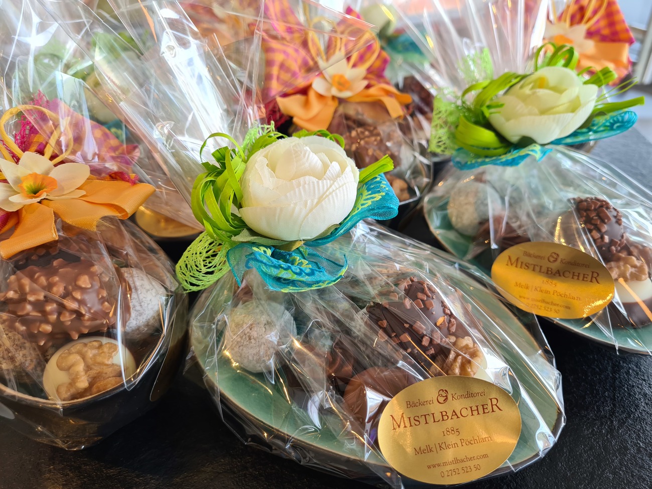 Ostern ist das Fest der Freude. Endlich wird der Osterhase wieder zum Eierlieferanten und in unserer Bäckerei reiht sich ein frisch gebackenes Osterlamm an das andere. In dieser Zeit dürfen wir in unserer Konditorei auch wieder kreativ sein. Wir modellieren Ostereier aus Marzipan und Zucker-Brioche darf auch nicht fehlen. Also: "Wenn Mehlspeis-Duft weht um die Nasen, liebe Grüße vom Mistlbacher Osterhasen".