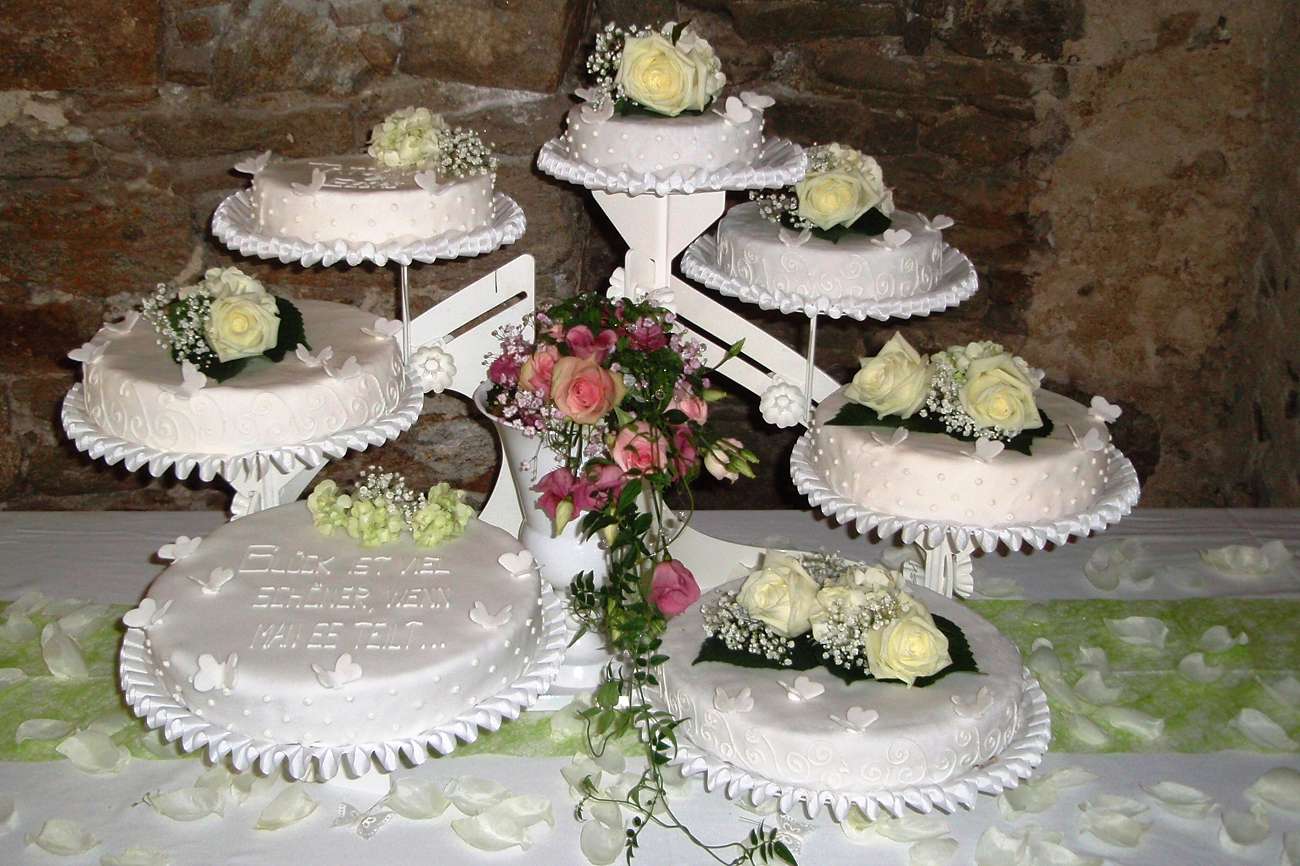 Wenn aus einer Torte ein viel bestauntes Kunstwerk wird, dann wurde Sie von uns gebacken und dekoriert! Ein Stück Glück, das Ihren besonderen Tag nicht nur versüßt, sondern Ihr Hochzeitsthema raffiniert komplementiert.